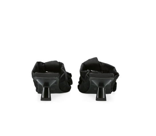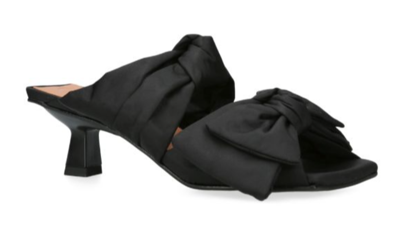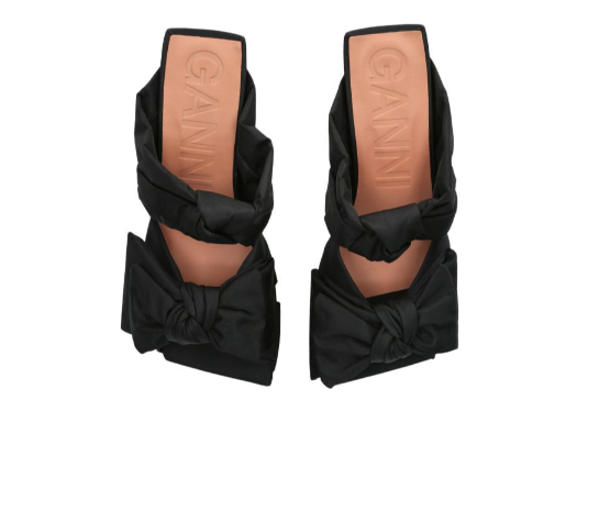 If you want to know which footwear silhouettes will define the upcoming Spring/Summer season, simply look to GANNI’s showcase. After all, the Scandinavian label’s a major player in setting cult trends at large, with its shoes always coming out on top. This year, it makes a strong case for delicate kitten-heel mules, seen here detailed with statement-making bows rendered from the brand's favourite recycled nylon.