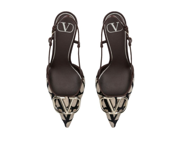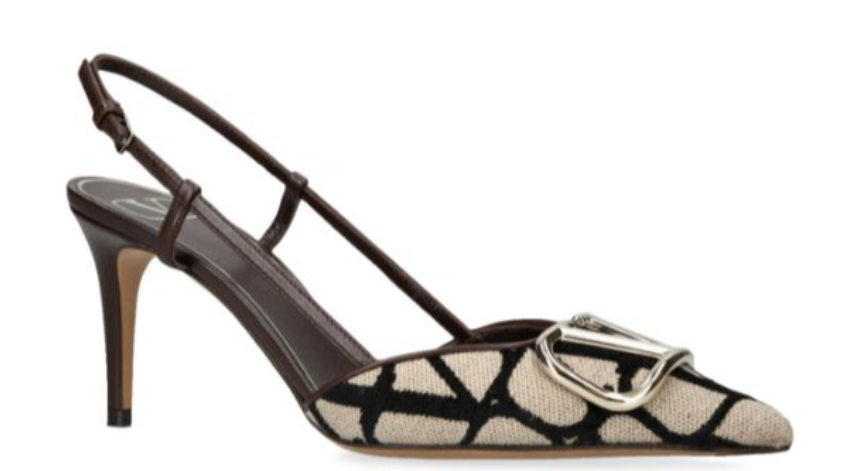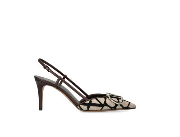 A small but mighty heel featuring Valentino Garavani's Toile Iconographe motif is interpreted as a neutral jacquard, inspired by an archival VLogo pattern of the '70s. The historic House puts extra focus on expert craftsmanship — the pair will slip on and off your feet effortlessly, while the buckled strap ensures they stay put all night long. The oversized VLogo plaque adds the final touch to this staple pair.